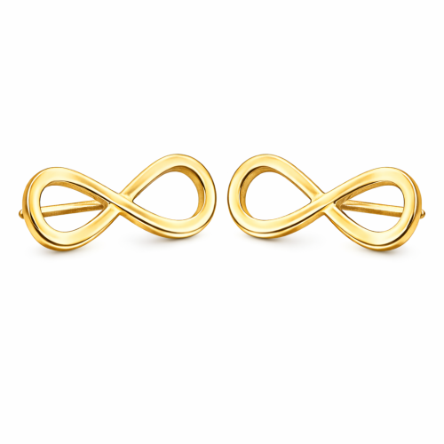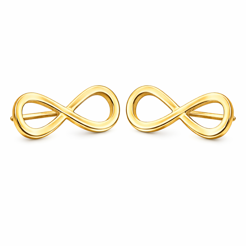 Aretes de acero inoxidable en tono amarillo, diseño de infinito.