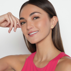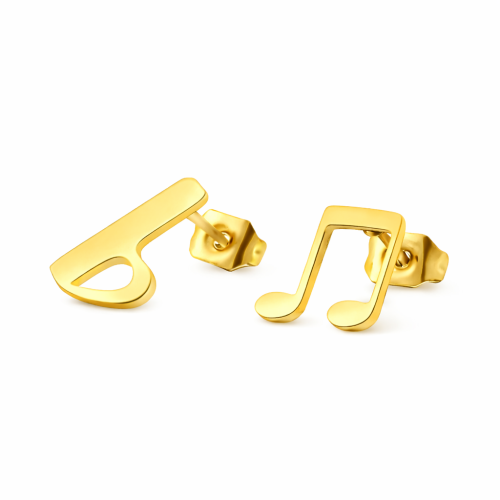 Aretes de acero inoxidable en tono amarillo, diseño de nota musical.