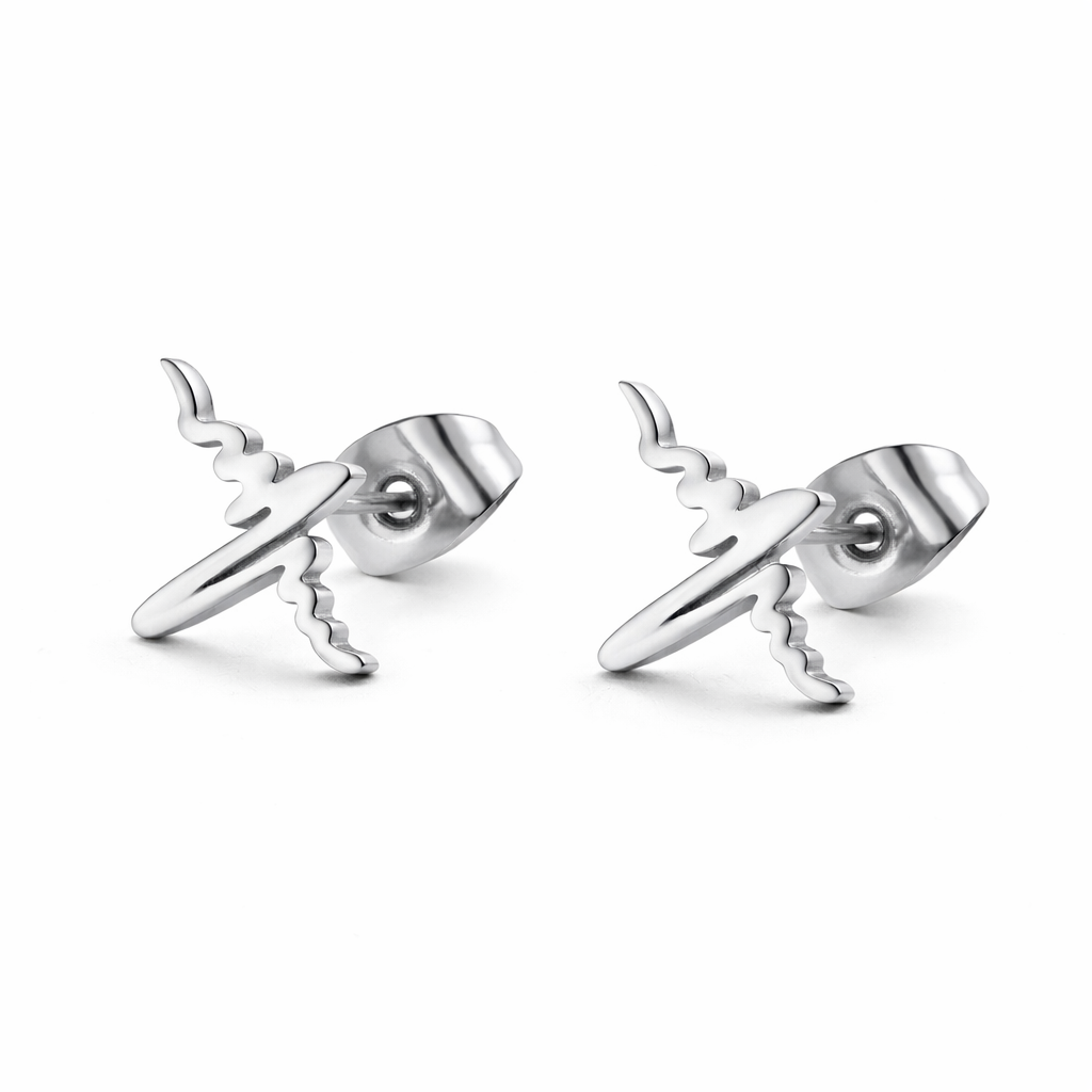 Aretes de acero inoxidable en tono blanco, diseño de latido de corazón.