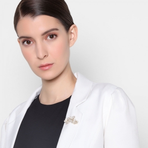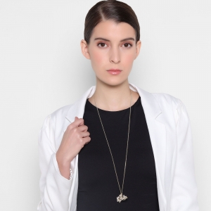 Precioso collar-prendedor en baño de oro amarillo de 18 quilates, diseño