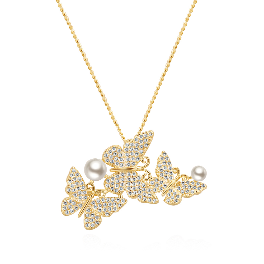 de mariposas, con perlas blancas e incrustaciones de cristales blancos.