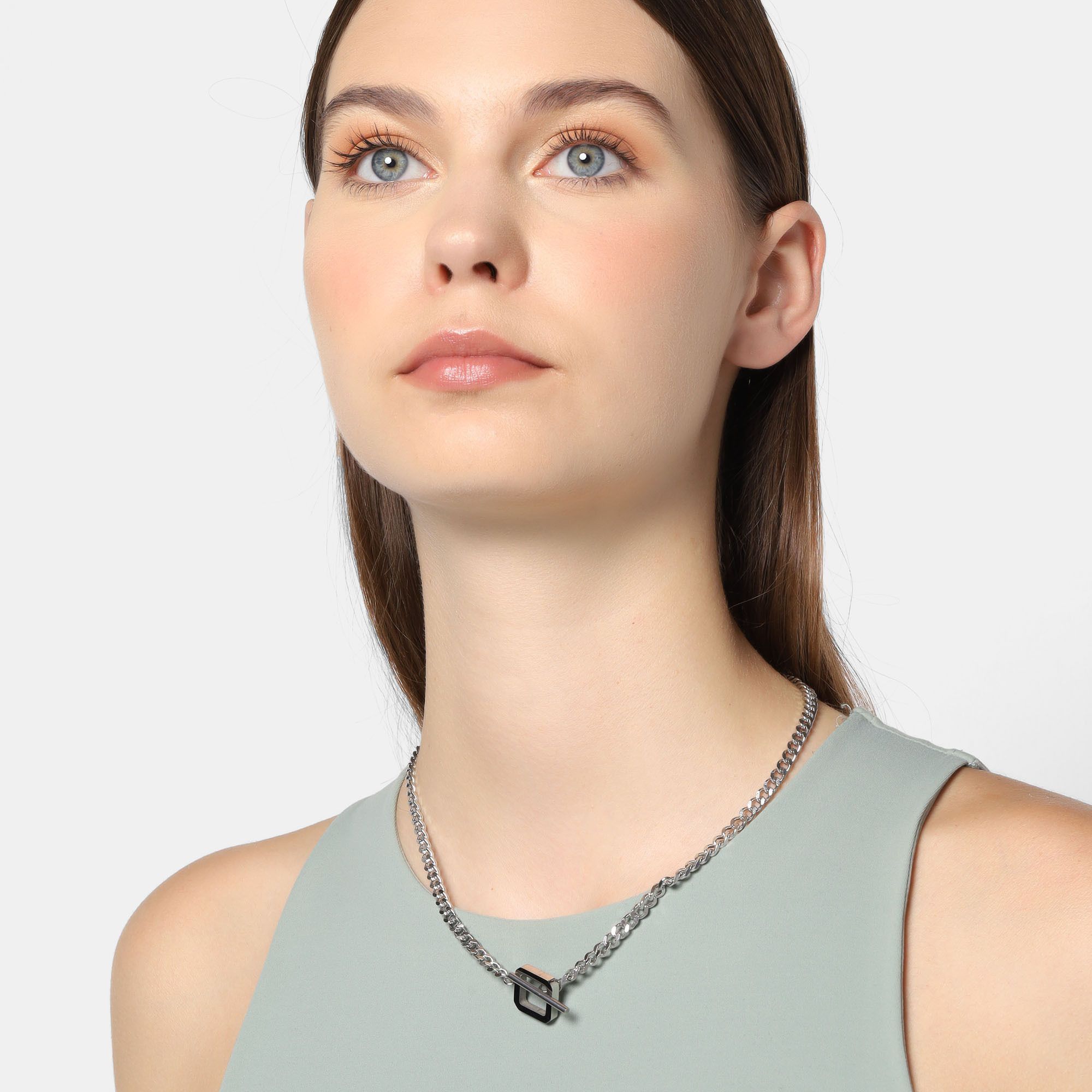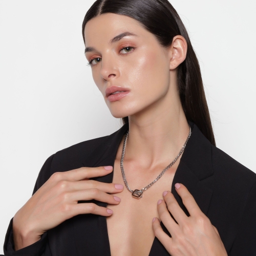 Fino collar en acero de titanio en color blanco diseño de cadena con clavícula.