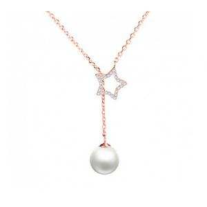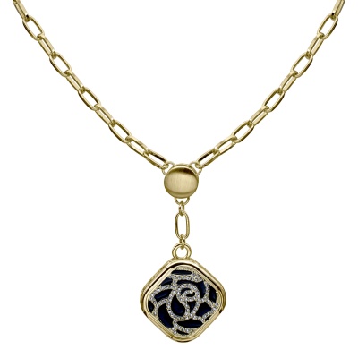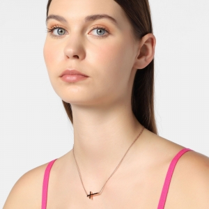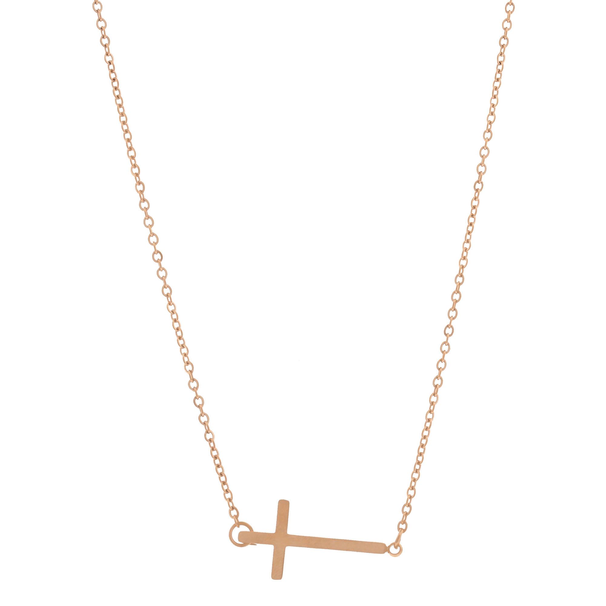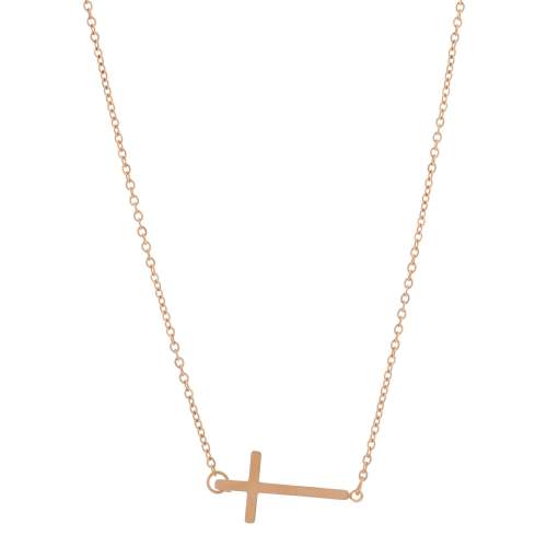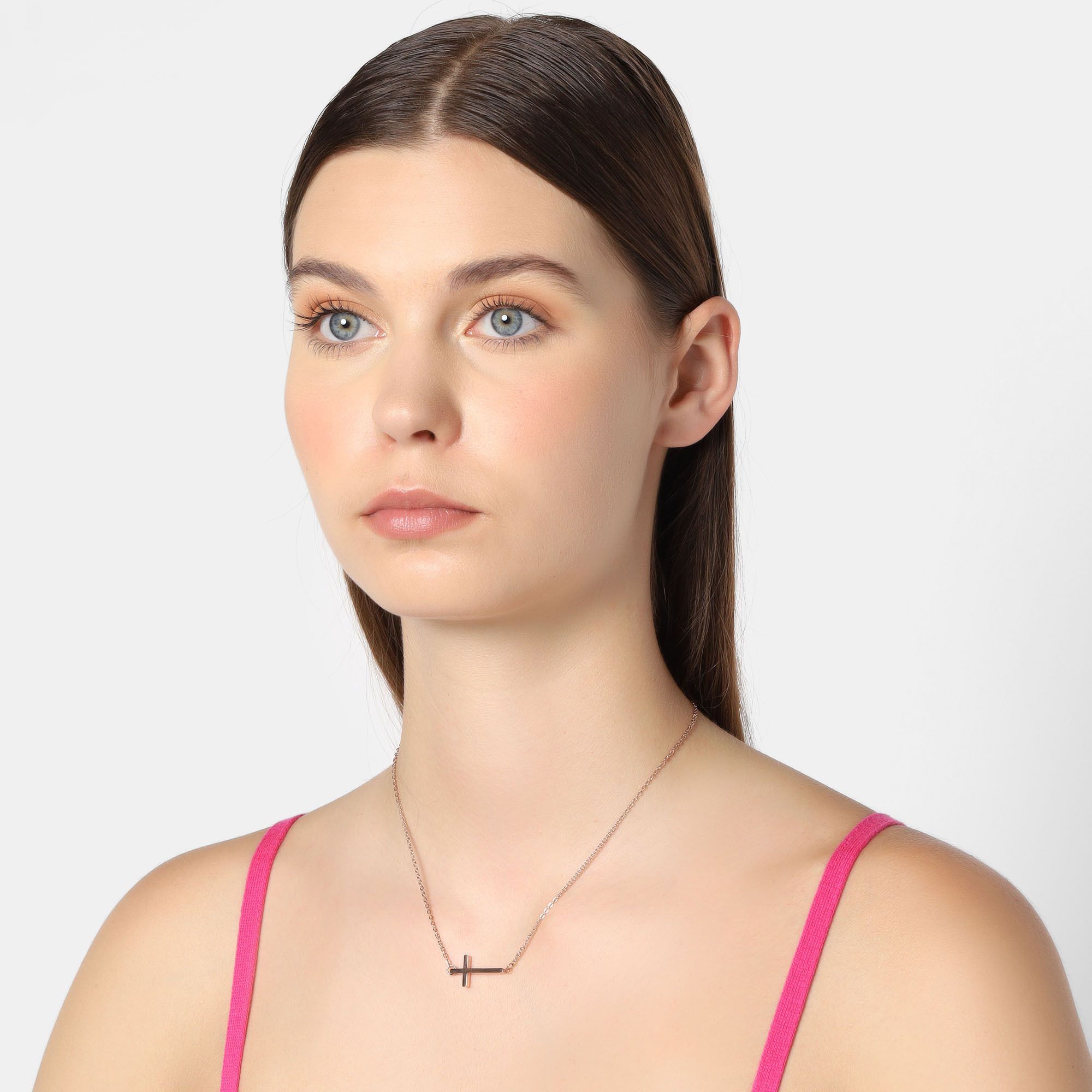 Fino collar en acero de titanio color rosa, diseño de cruz.