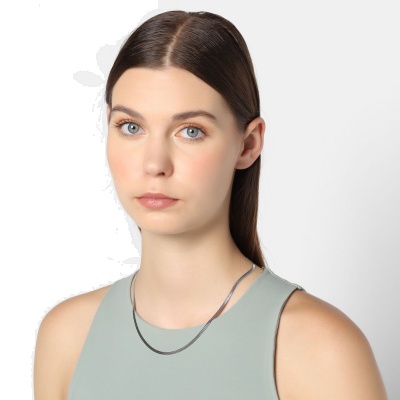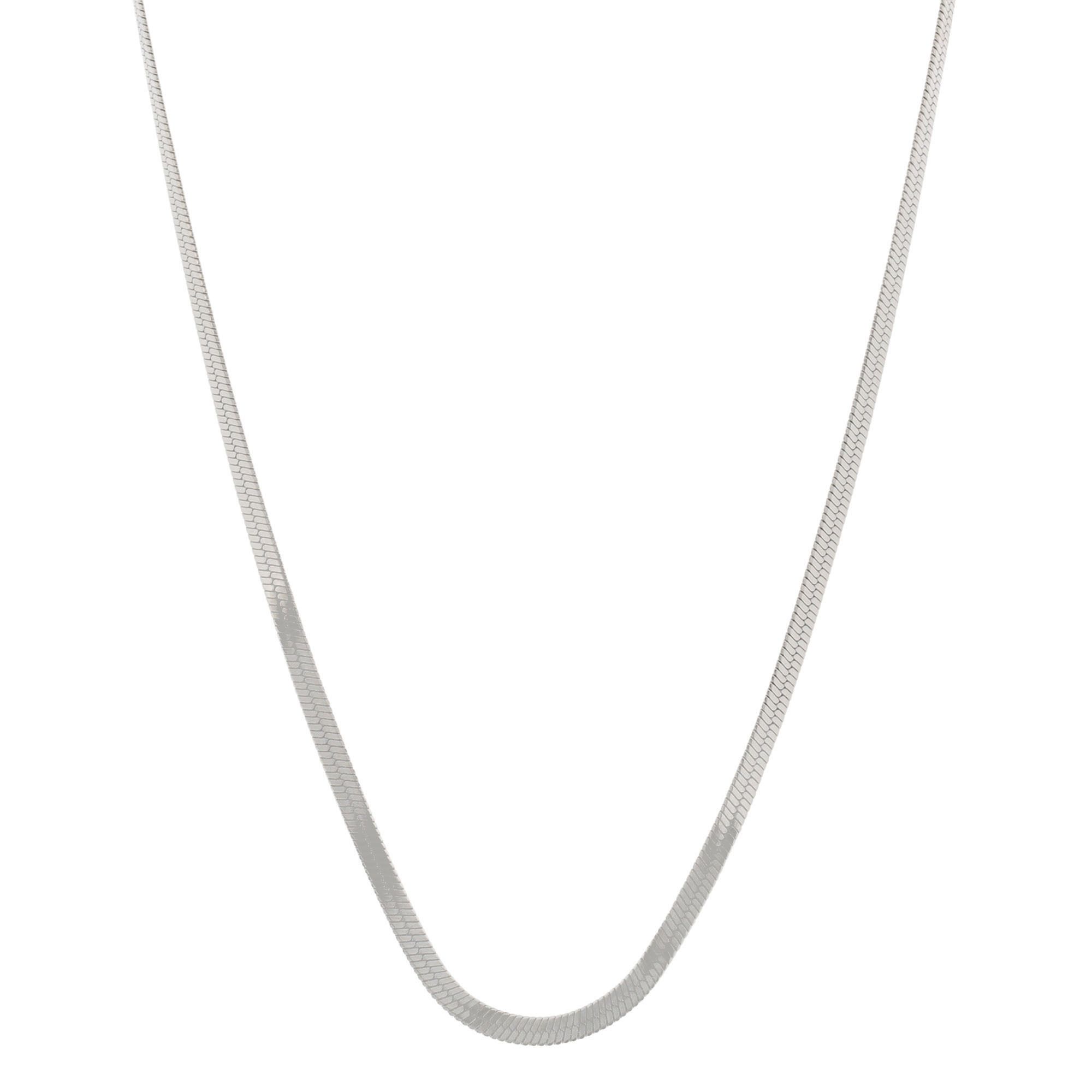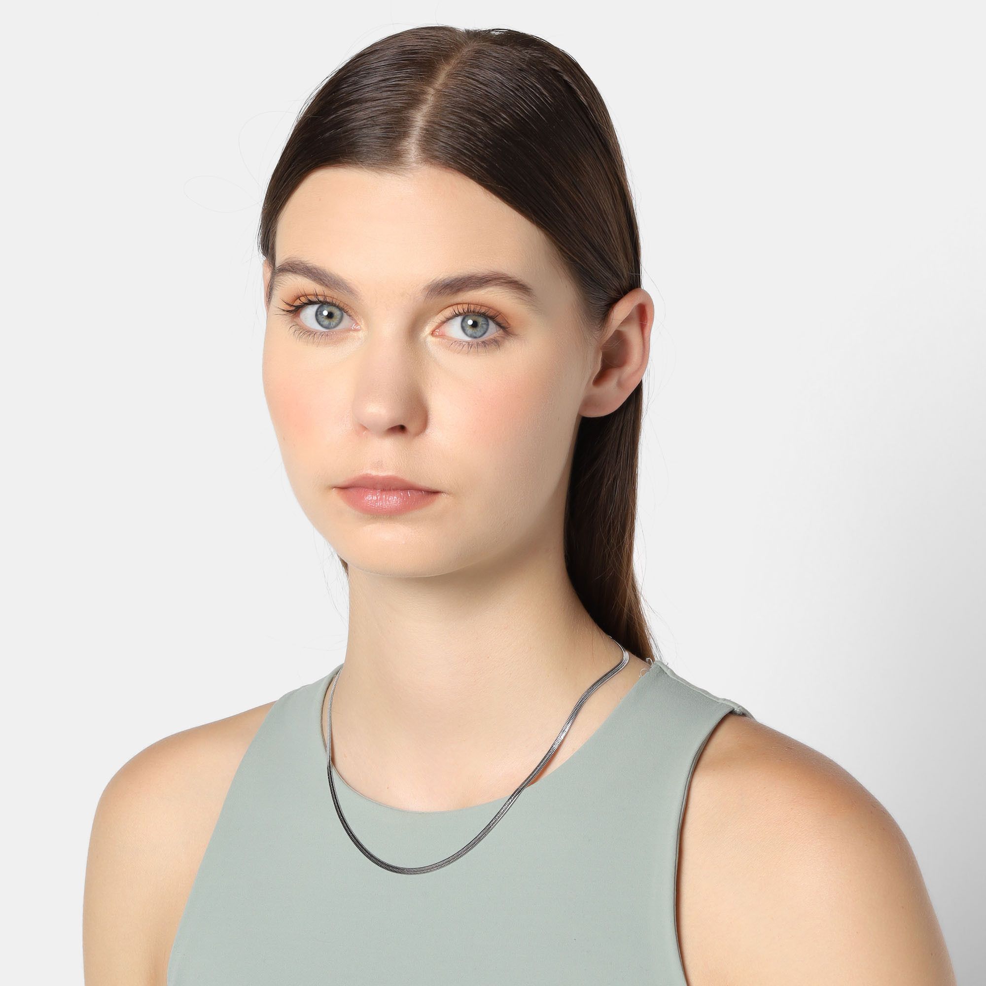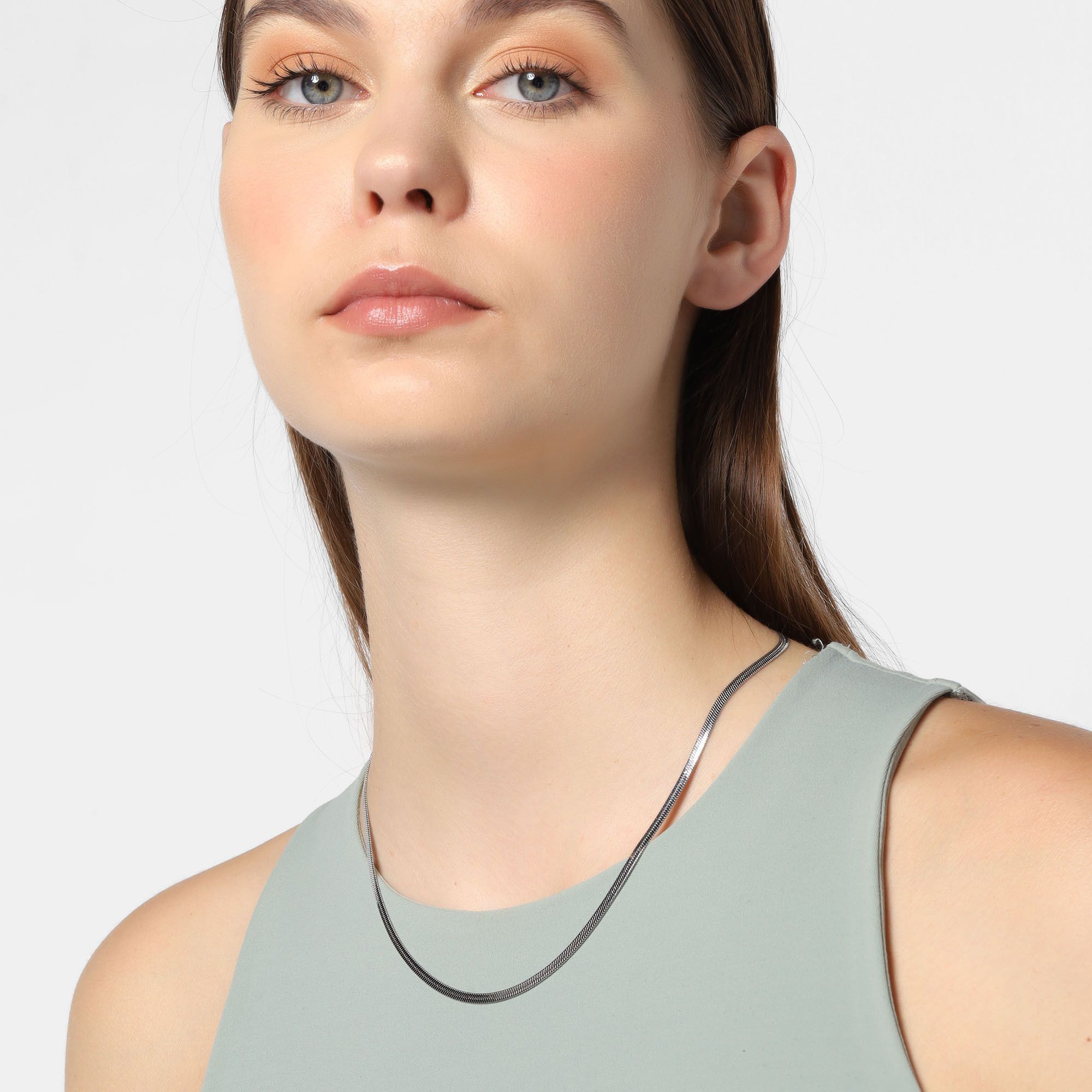 Delicado collar en acero inoxidable color blanco, diseño de cadena planchada.