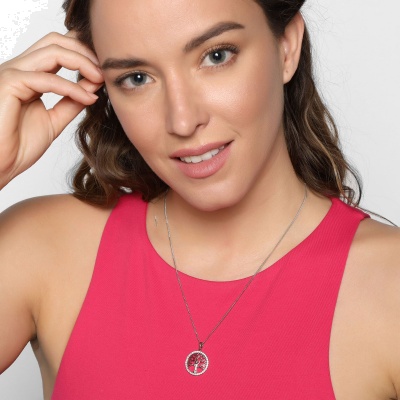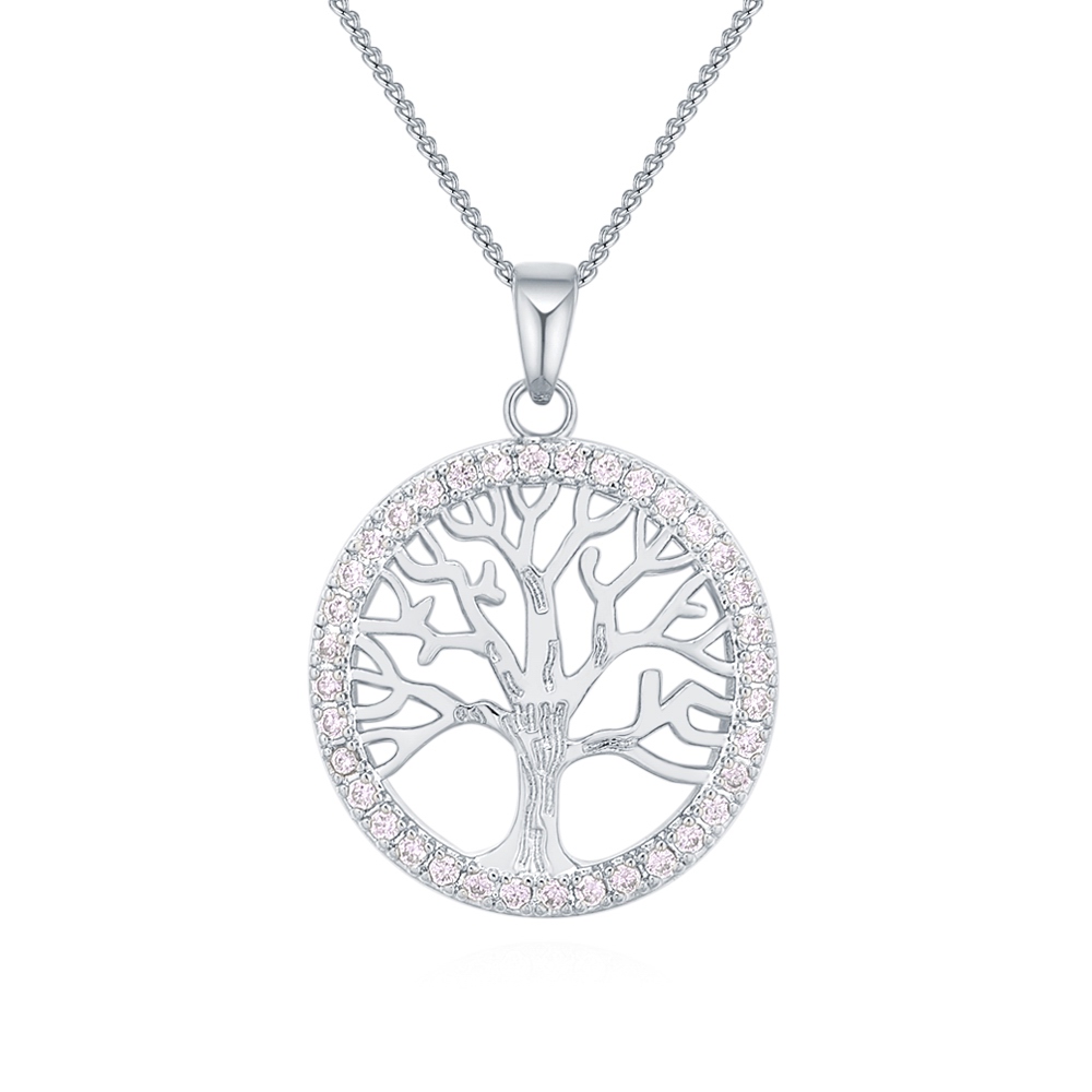 Exclusivo dije con cadena en baño de oro blanco de 18 quilates, diseño de árbol de la vida, con incrustaciones de cristales blancos.