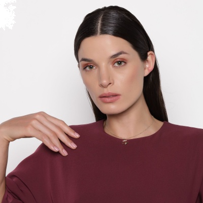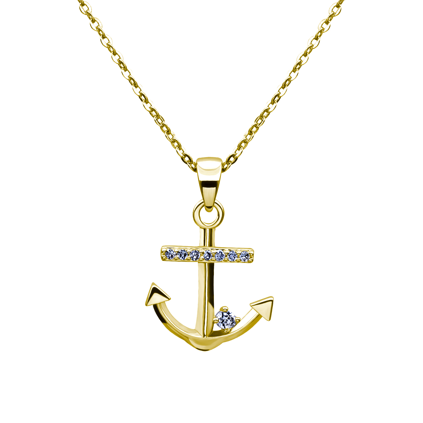 Lindo dije con cadena en baño de oro amarillo de 18 quilates, diseño de ancla con incrustaciones de cristales blancos.