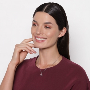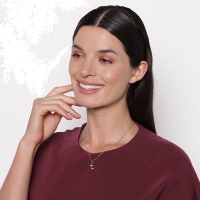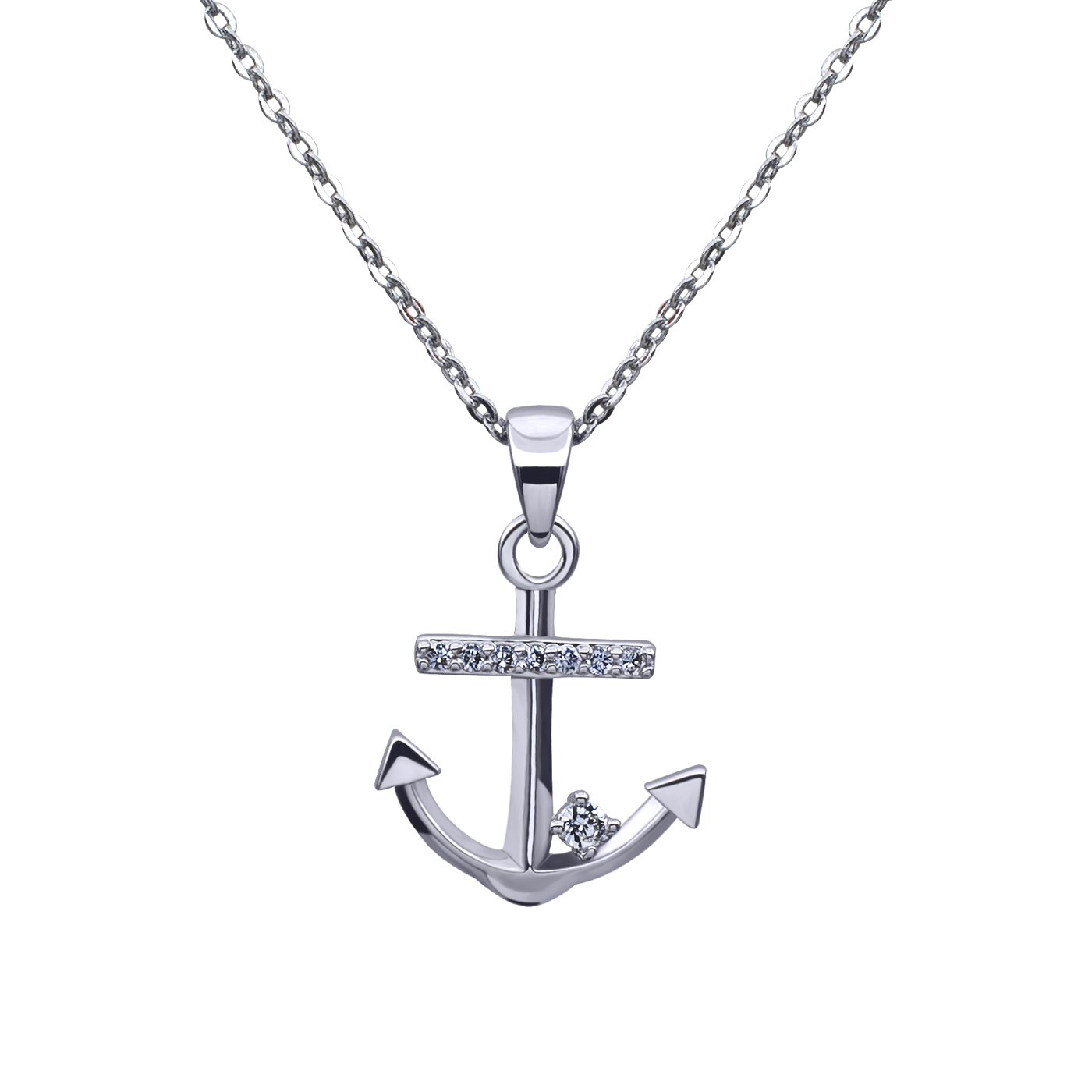 Lindo dije con cadena en baño de oro blanco de 18 quilates, diseño de ancla con incrustaciones de cristales blancos.