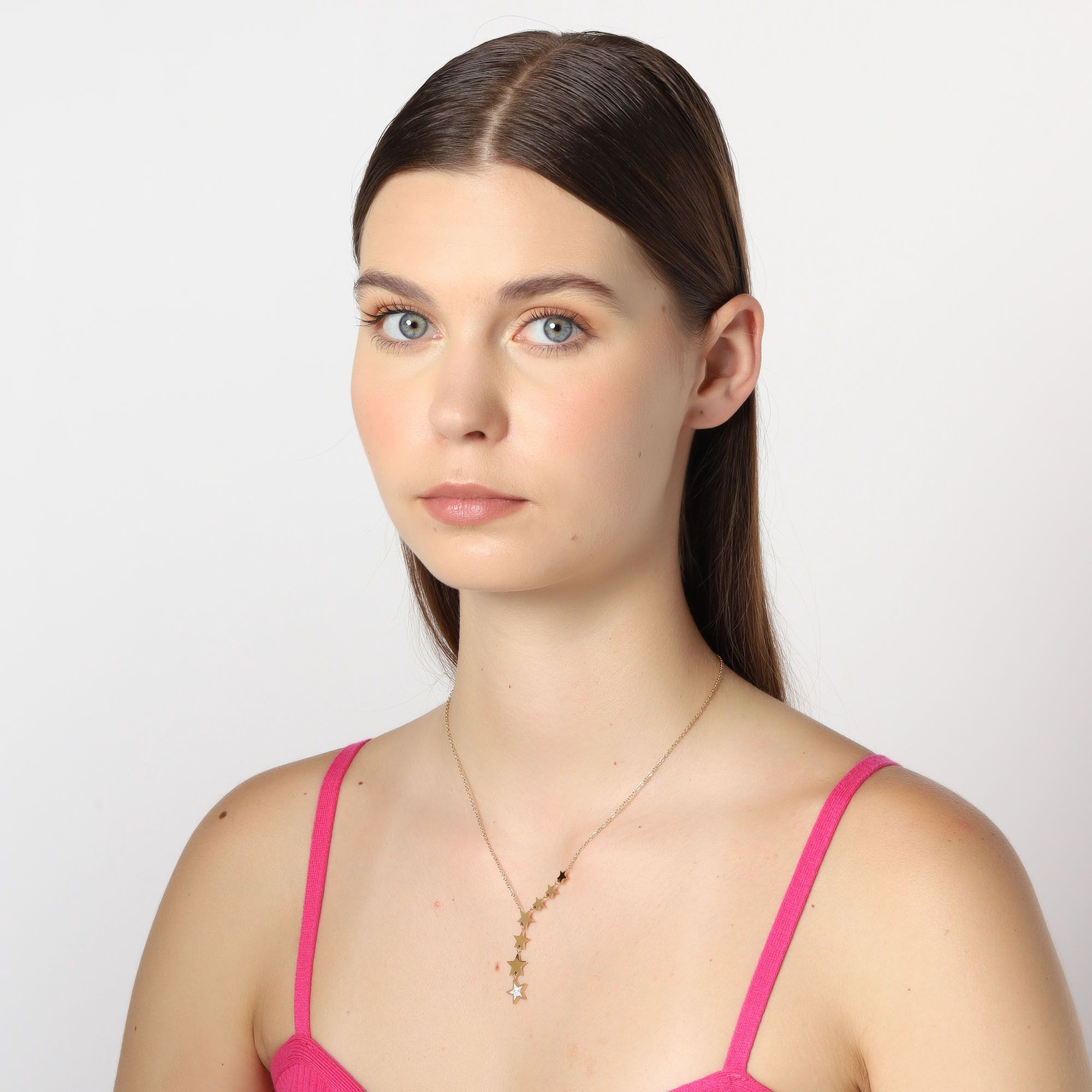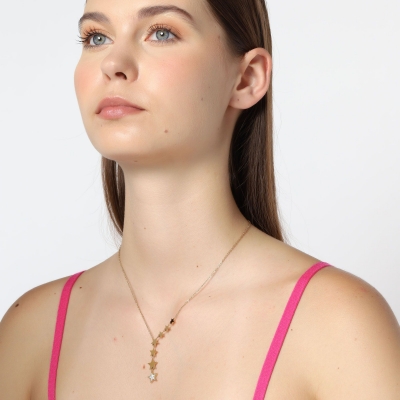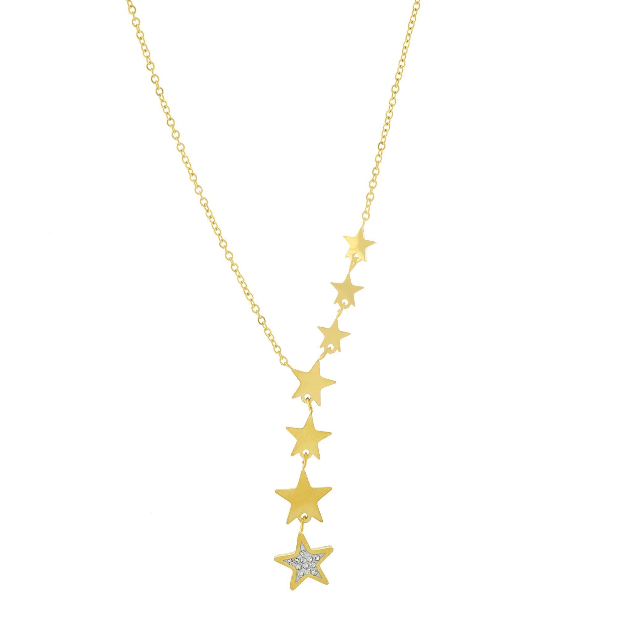 Precioso collar en acero de titanio color amarillo, diseño de estrellas con cristales blancos incrustados.