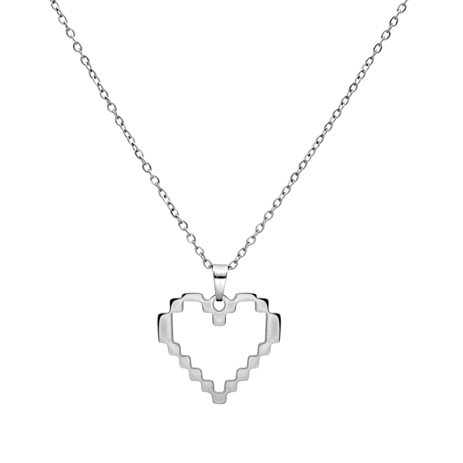 Dije de acero inoxidable en tono blanco, diseño de corazón.
