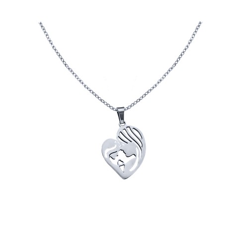 Dije de acero inoxidable en tono blanco, diseño de corazón con grabado de mamá e hija