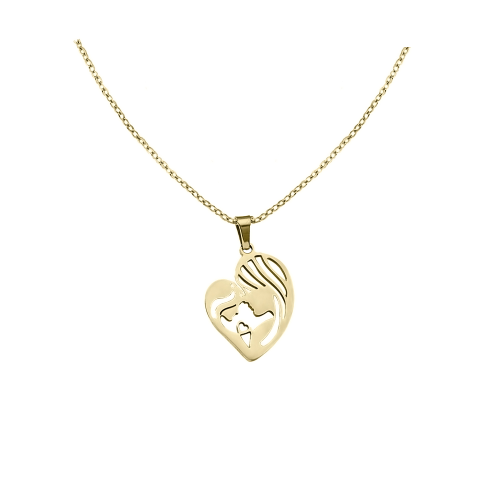 Dije de acero inoxidable en tono amarillo, diseño de corazón con grabado de mamá e hija