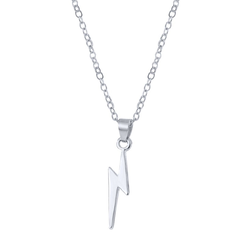 Dije en baño de oro blanco de 18 quilates, diseño de rayo.