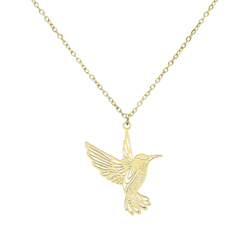 Dije de acero inoxidable en tono amarillo, diseño de colibrí.