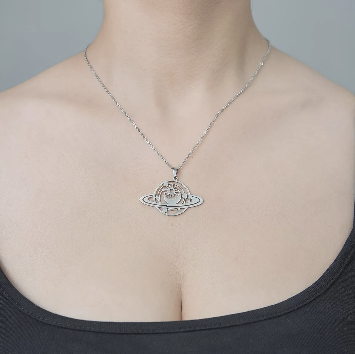 Dije de acero inoxidable, diseño de sistema planetario solar.
