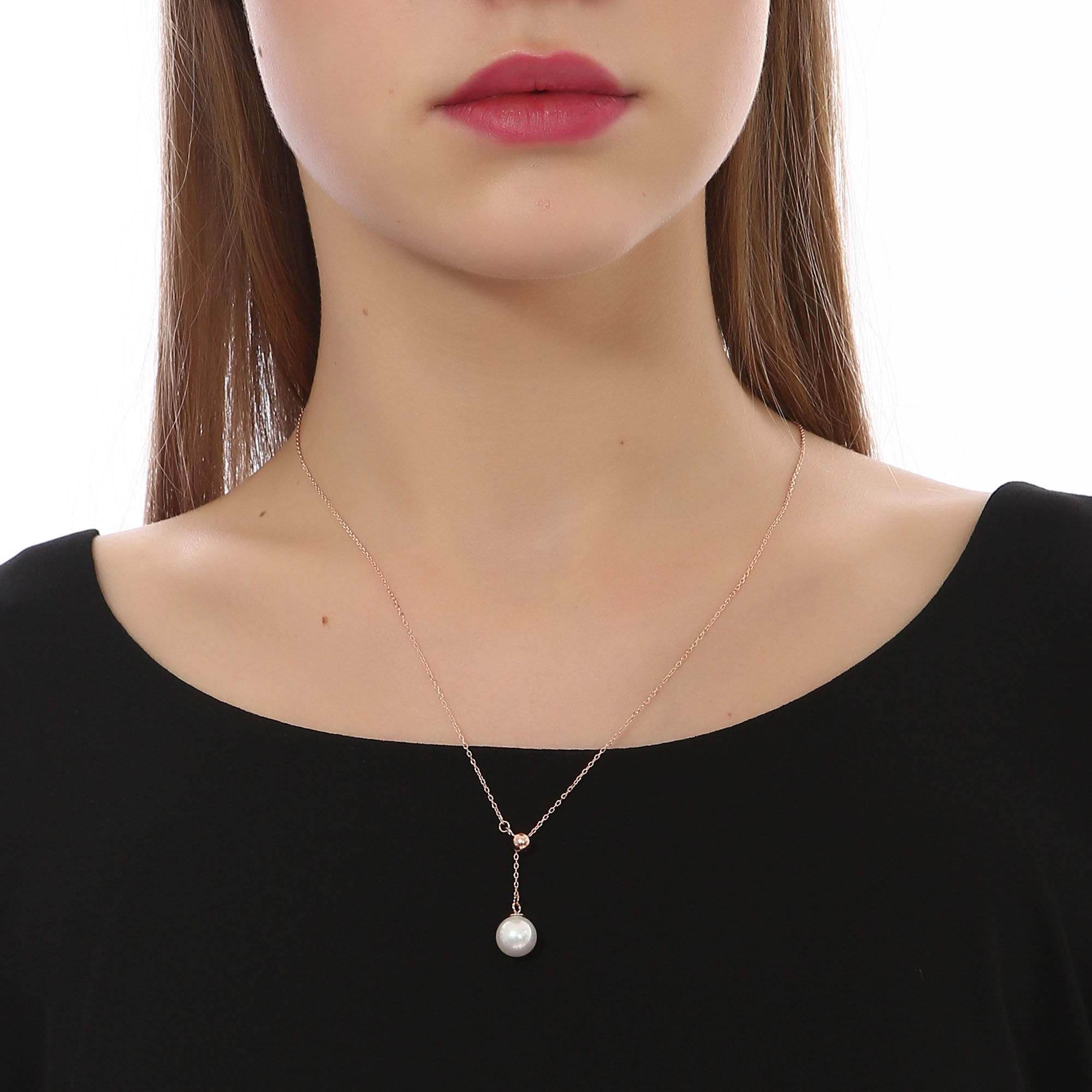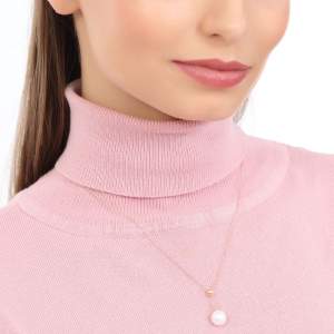 Dije con cadena en baño de oro rosa de 18 quilates, diseño con perla blanca. Fabricado en una estructura de aleación de platino con rodio sin níquel.