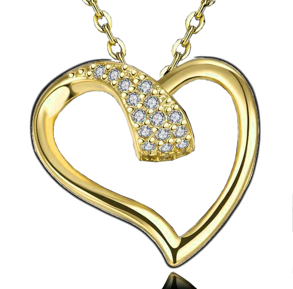 Dije con cadena en baño de oro amarillo de 18 quilates, diseño de corazón con incrustaciones de cristales en color blanco. Fabricado en una estructura de aleación de platino con rodio sin níquel.