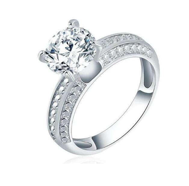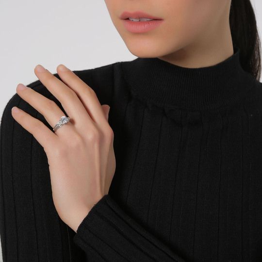 Anillo en baño de oro blanco de 18 quilates, fino diseño con cristalblanco corte brillante e incrustaciones de cristales blancos. Fabricado en una estructura de aleación de platino con rodio sin níquel.