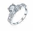 Anillo en baño de oro blanco de 18 quilates, fino diseño con cristla blanco corte brillante e incrustaciones de cristales blancos. Fabricado en una estructura de aleación de platino con rodio sin níquel.