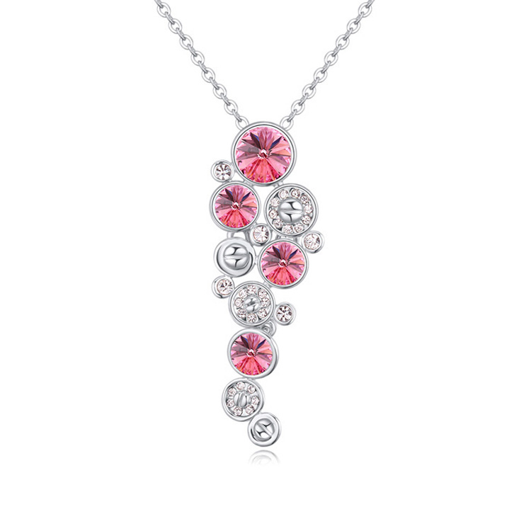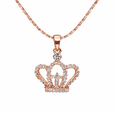 Lindo dije en baño de oro blanco de 18 quilates, fino diseño con incrustaciones de cristales en color blanco y rosa. Fabricado en una estructura de aleación de platino con rodio sin níquel.