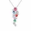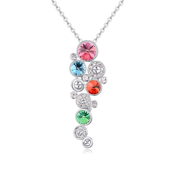 Lindo dije en baño de oro blanco de 18 quilates, fino diseño, estilo cascada, con incrustaciones de cristales en colores. Fabricado en una estructura de aleación de platino con rodio sin níquel.