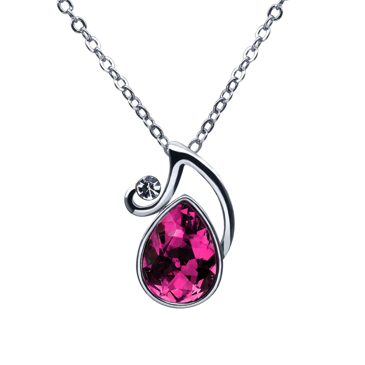 Dije con cadena en baño de oro banco de 18 quilates, diseño de gota con incrustación de cristal en color rosa y una chispa de cristal blanco. Fabricado en una estructura de aleación de platino con rodio sin níquel.