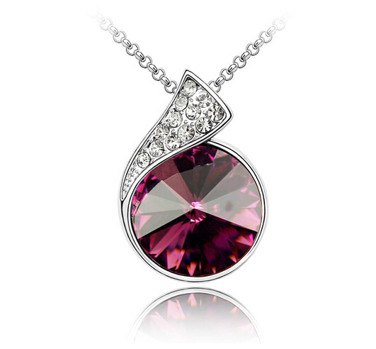 Dije con cadena en baño de oro blanco de 18 quilates, diseño de círculo con incrustaciones de cristales en color blanco y vino. Fabricado en una estructura de aleación de platino con rodio sin níquel.