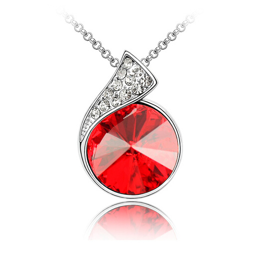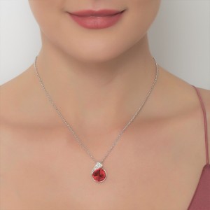 Dije con cadena en baño de oro blanco de 18 quilates, diseño de círculo con incrustaciones de cristales en color blanco y rojo. Fabricado en una estructura de aleación de platino con rodio sin níquel.