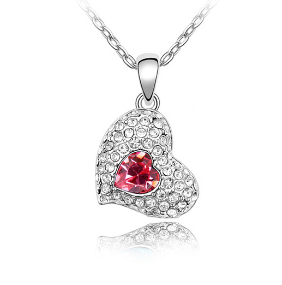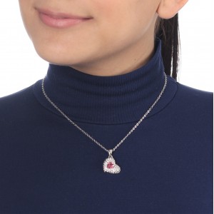 Dije con cadena en baño de oro banco de 18 quilates, diseño de corazón con incrustaciones de cristales en color rosa y blanco. Fabricado en una estructura de aleación de platino con rodio sin níquel.