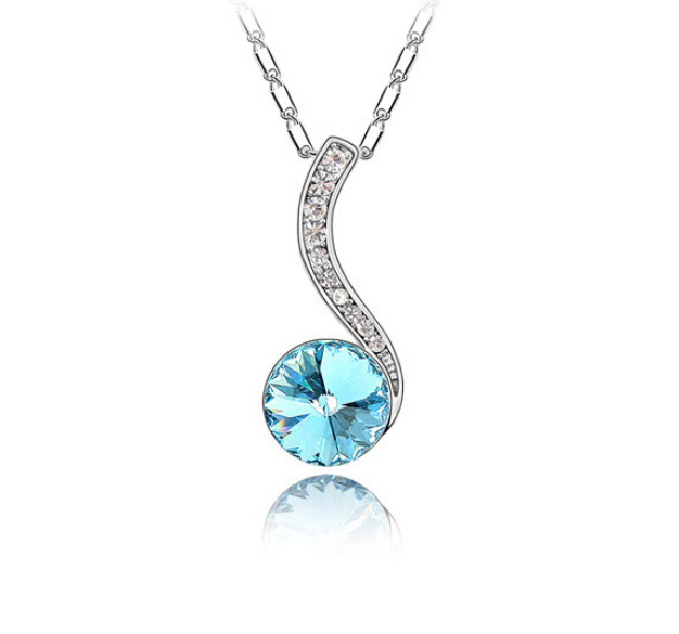 Lindo dije con cadena, en baño de oro blanco de 18 quilates, fino diseño con cristal azul corte brillante e incrustaciones de cristales blancos. Fabricado en una estructura de aleación de platino con rodio sin níquel.