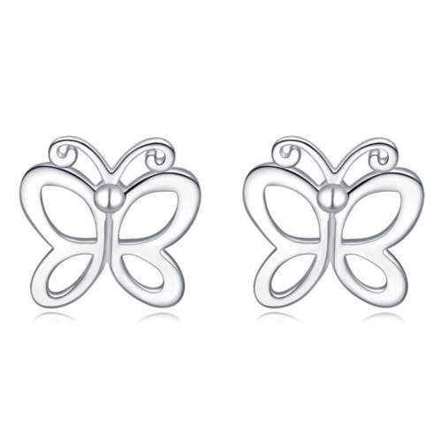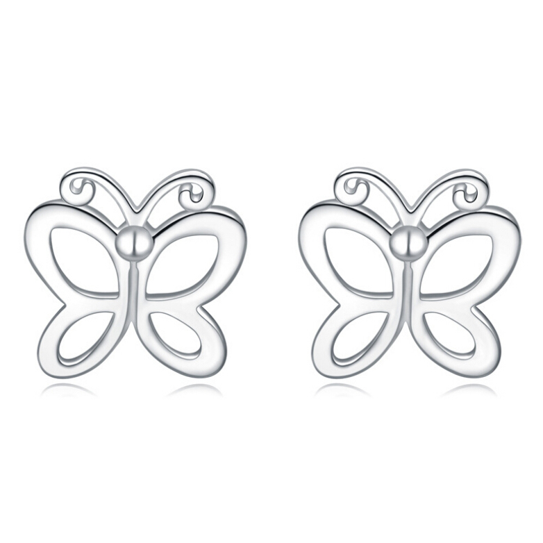Elegantes aretes en baño de oro blanco de 18 quilates, diseño de mariposa. Fabricado en una estructura de aleación de platino con rodio sin níquel.