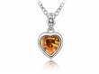 Dije con cadena en baño de oro blanco de 18 quilates, diseño de corazón, con cristal ámbar e incrustaciones de cristales blancos. Fabricado en una estructura de aleación de platino con rodio sin níquel.