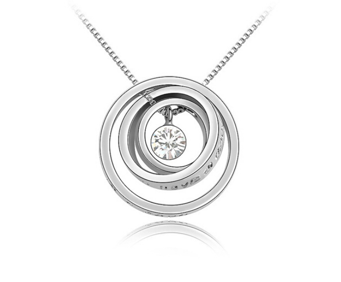 Lindo dije en baño de oro blanco de 18 quilates, diseño de aros con relieve e incrustación de cristal en color blanco. Fabricado con una estructura en aleación de platino con rodio sin níquel.