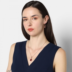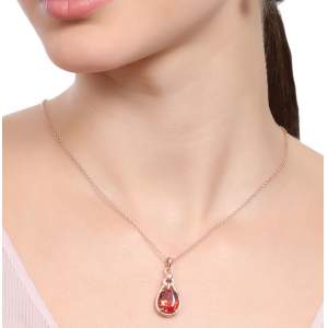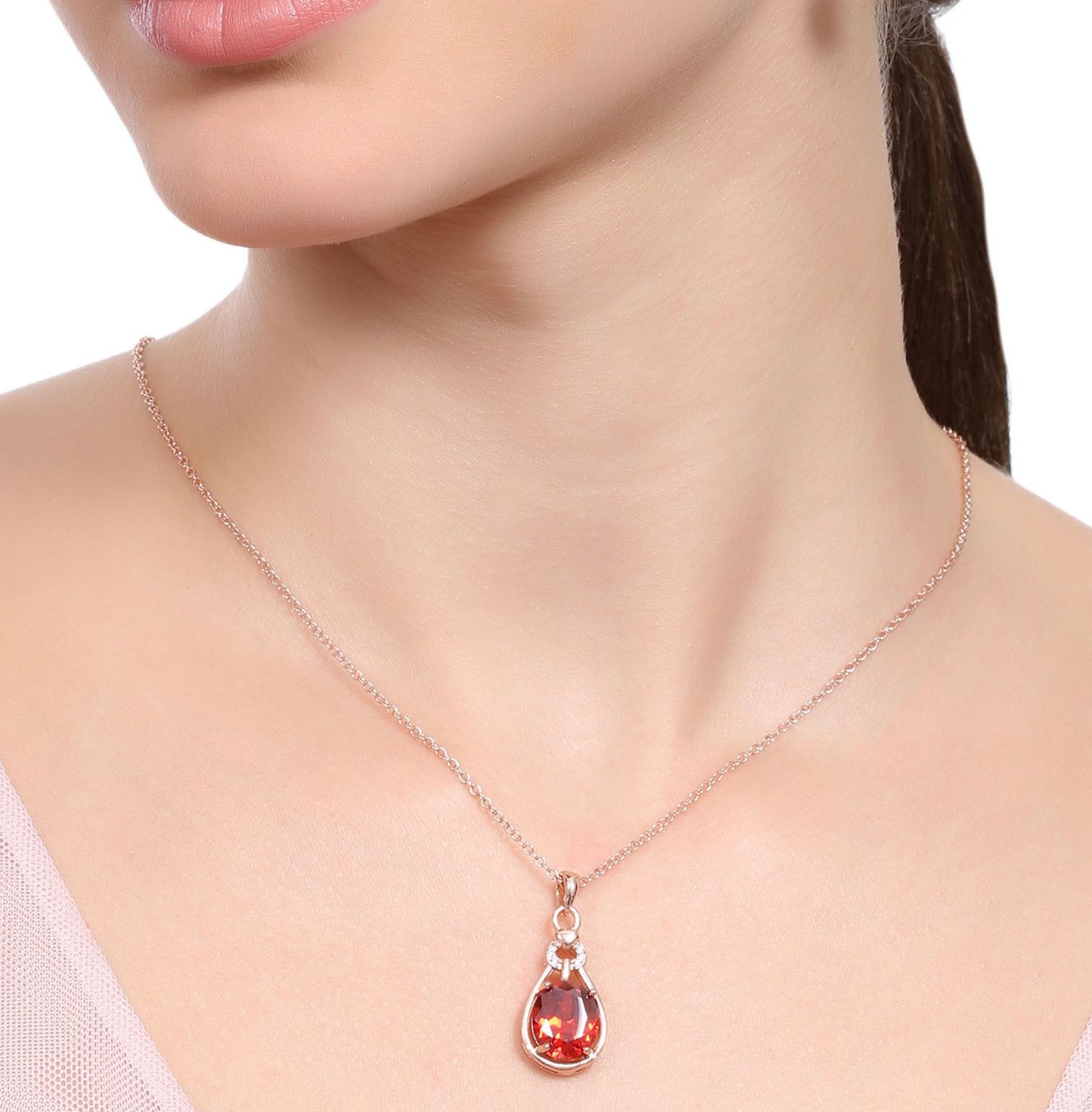 Dije en ba�o de oro rosa de 18 quilates, dise�o de gota con cristal rojo, un peque�o coraz�n rosado e incrustaciones de cristales en color blanco. Fabricado en una estructura de aleaci�n de platino con rodio sin n�quel.