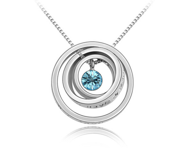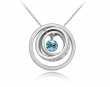 Dije con cadena en baño de oro blanco de 18 quilates, diseño de aros con relieve e incrustación de cristal en color azul. Fabricado en una estructura de aleación de platino con rodio sin níquel.