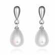 Elegantes aretes en baño de oro blanco de 18 quilates, con detalle de perla blanca con incrustaciones de cristales en color blanco. Fabricado en una estructura de aleación de platino con rodio sin níquel.