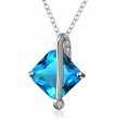 Elegante dije con cadena en baño de oro blanco de 18 quilates, con cristal azul en forma de rombo e incrustaciones de cristales en color blanco. Fabricado en una estructura de aleación de platino con rodio sin níquel.
