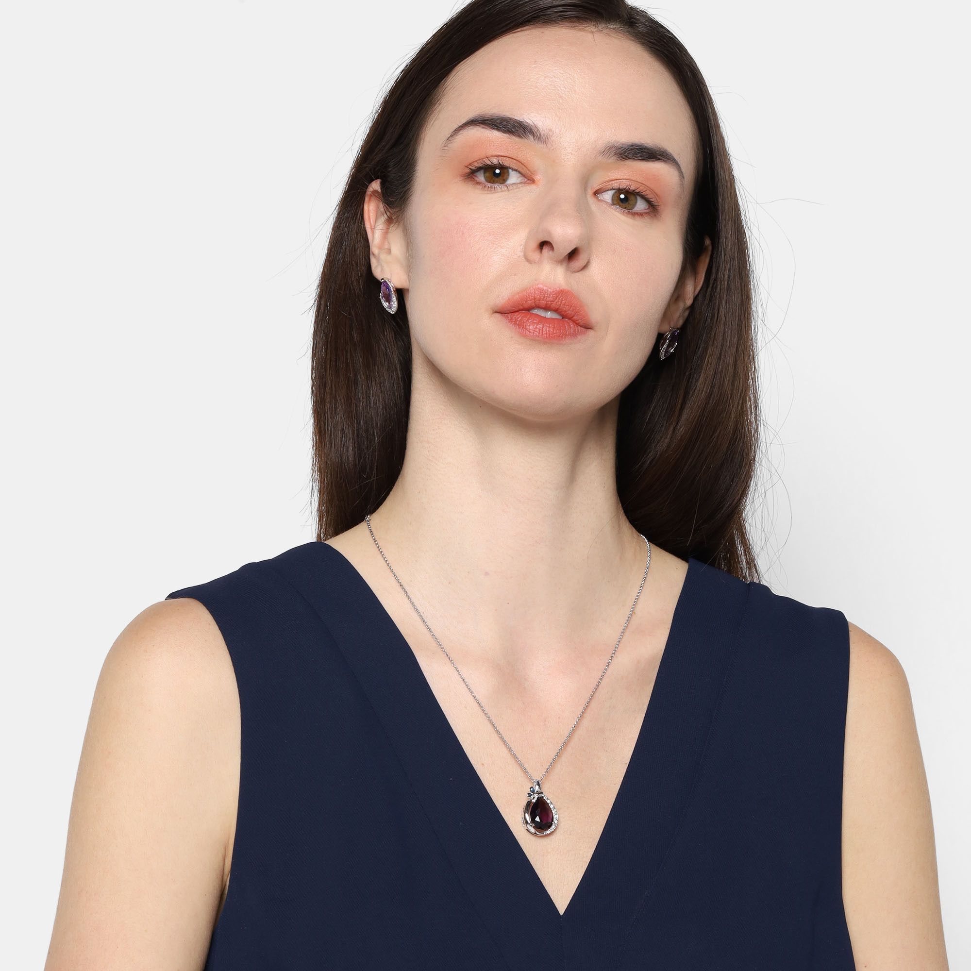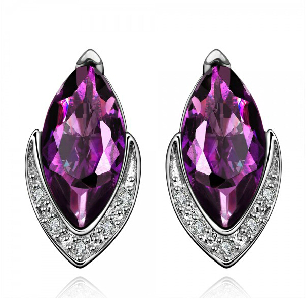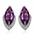 Elegantes aretes en baño de oro blanco de 18 quilates, con cristal morado corte oval e incrustaciones de cristales color blanco. Fabricado en una estructura de aleación de platino con rodio sin níquel.