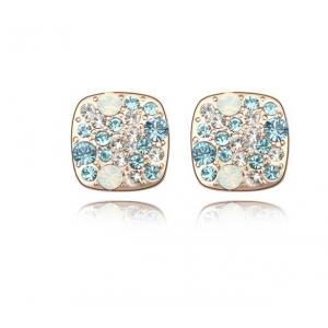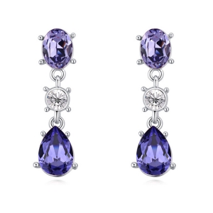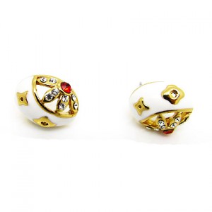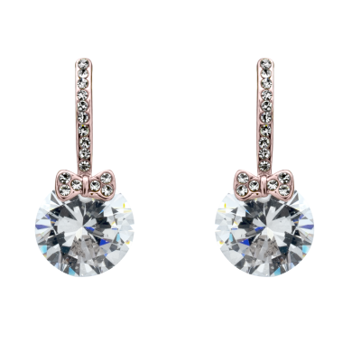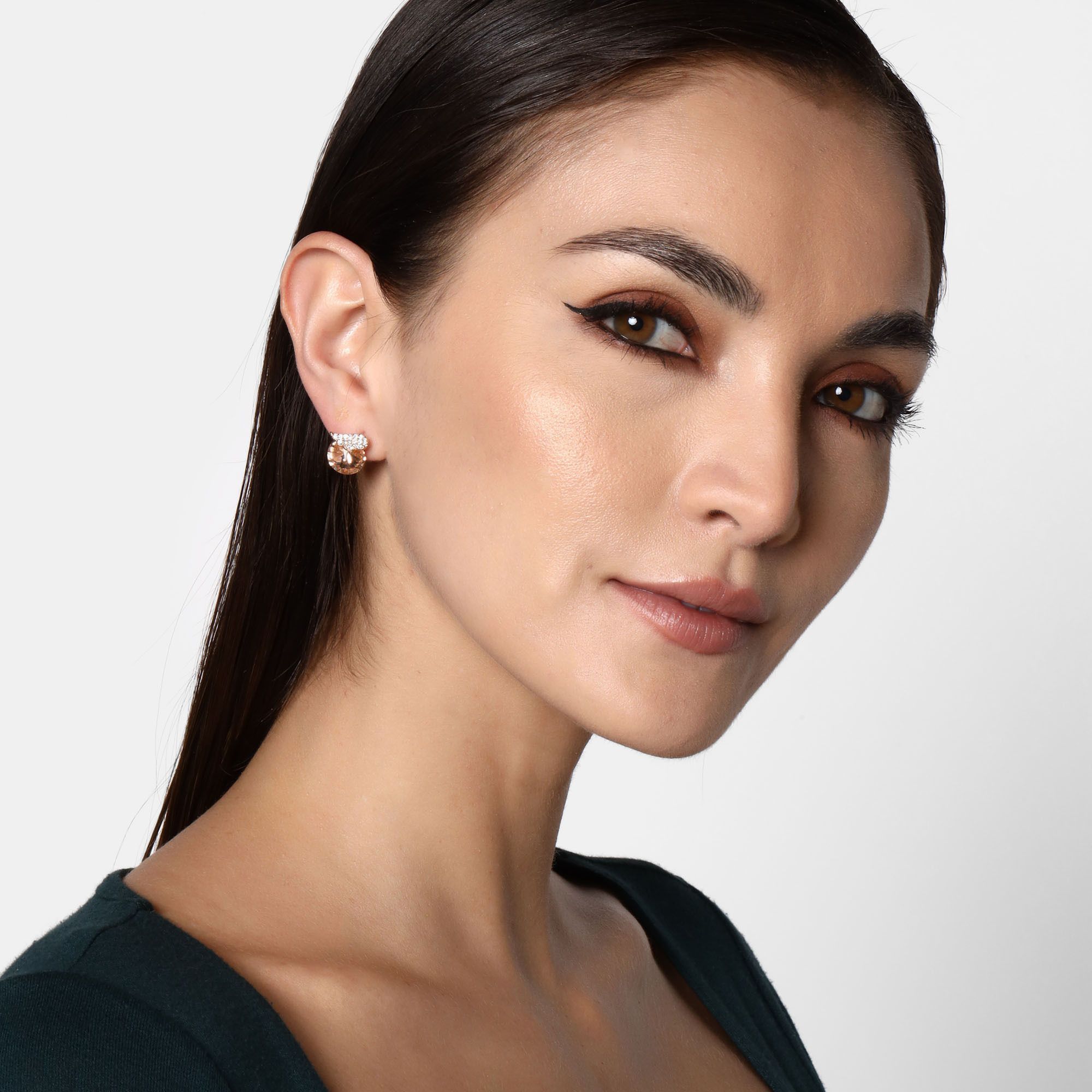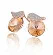 Hermosos aretes en baño de oro rosa de 18 quilates, cristal ambar corte brillante, detalle en forma de ala con incrustaciones de cristales en color blanco. Fabricado en una estructura de aleación de platino con rodio sin níquel.