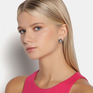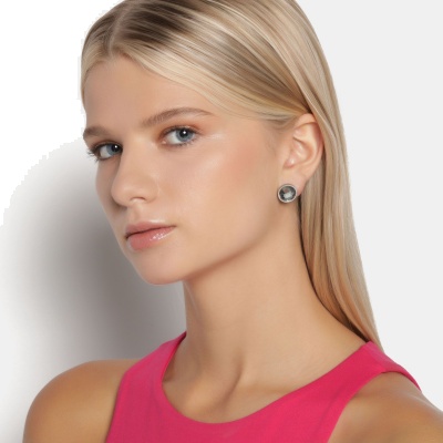 Aretes de acero inoxidable con cristal en color Oxford de forma circular. Fabricado en una estructura de aleación de platino con rodio sin níquel.