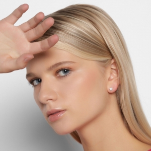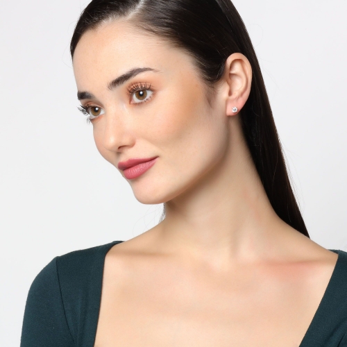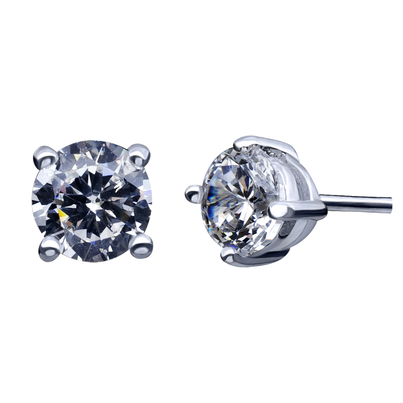 Aretes en baño de oro blanco de 18 quilates, fino diseño con incrustaciones de cristales en color blanco. Fabricado en una estructura de aleación de platino con rodio sin níquel.