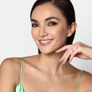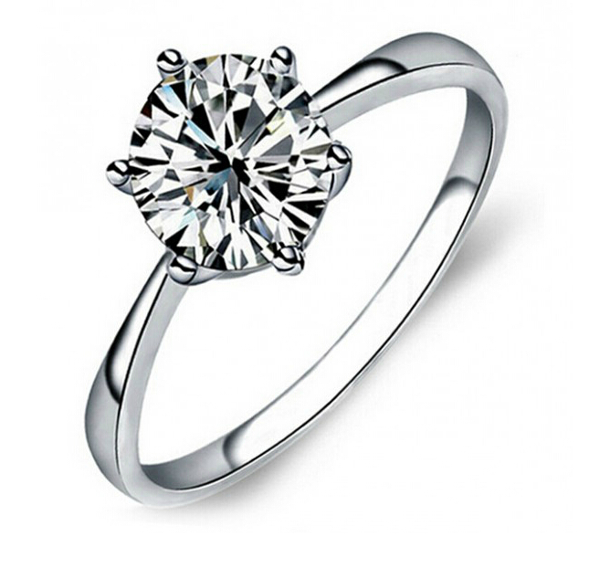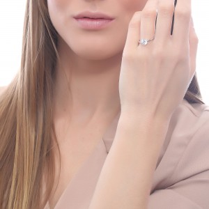 Anillo en baño de oro blanco de 18 quilates, fino diseño, con cristal blanco corte brillante. Fabricado en una estructura de aleación de platino con rodio sin níquel.