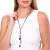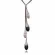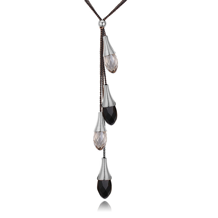 Collar en baño de oro blanco de 18 quilates, diseño de gotas con incrustaciones de cristales en color blanco y negro. Fabricado en una estructura de aleación de platino con rodio sin níquel.
