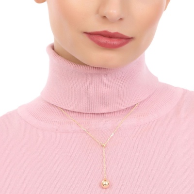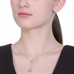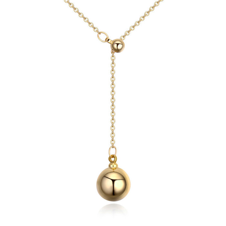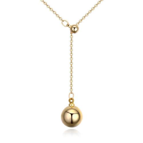 Lindo collar en baño de oro amarillo de 18 quilates, diseño con cuenta y esfera dorada. Fabricado en una estructura de aleación de platino con rodio sin níquel.