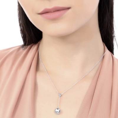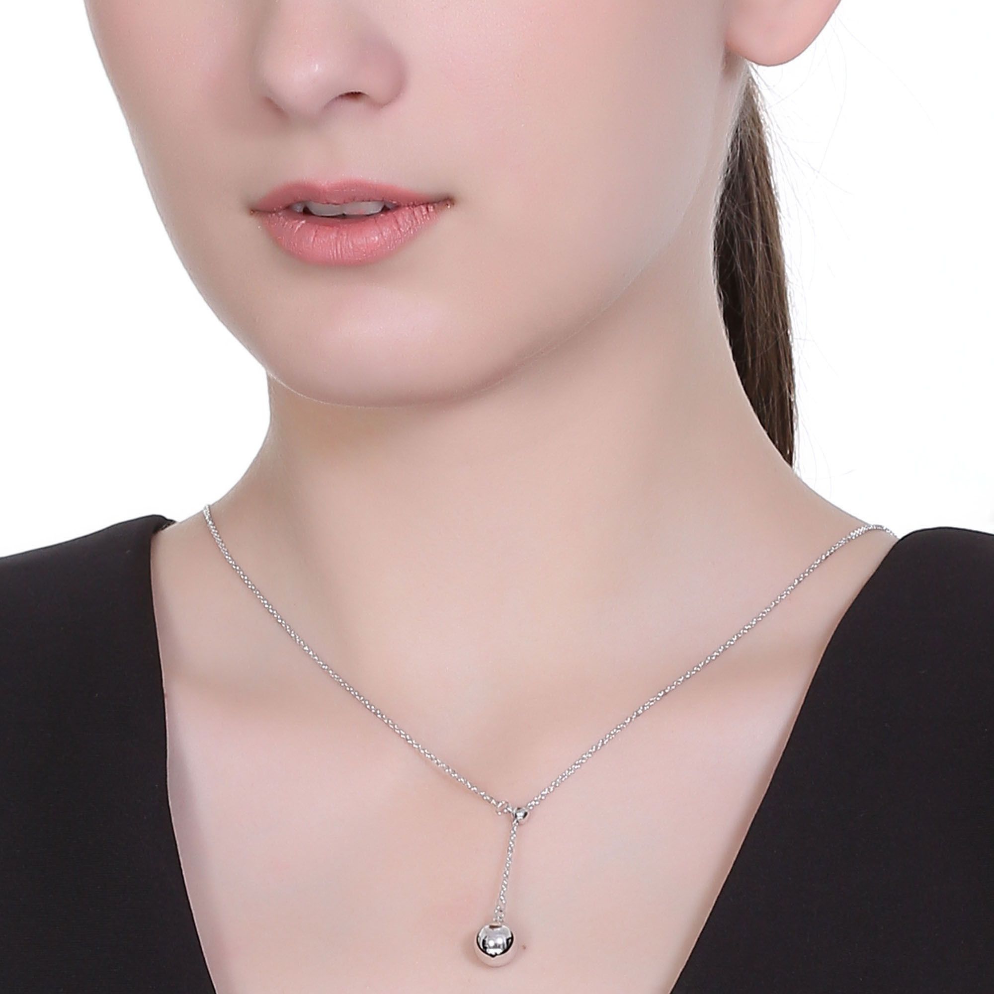 Lindo collar en baño de oro blanco de 18 quilates, diseño con cuenta y esfera plateada. Fabricado en una estructura de aleación de platino con rodio sin níquel.