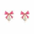 Lindos aretes en baño de oro amarillo de 18 quilates, diseño de moño esmaltado con incrustaciones de cristales en color blanco. Fabricado en una estructura de aleación de platino con rodio sin níquel.