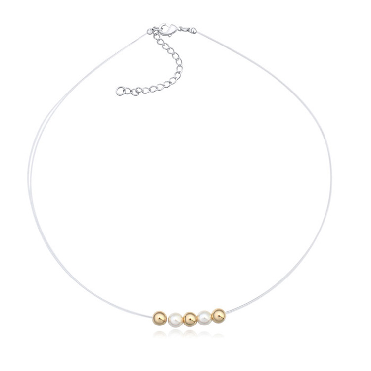 Lindo collar con detalles en baño de oro blanco de 18 quilates, perlas blancas y doradas e hilo reforzado.