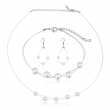 Juego de aretes, collar y pulsera en baño de oro blanco de 18 quilates, con diseño de perlas trenzadas en color blanco. Fabricado en una estructura de aleación de platino con rodio sin níquel.