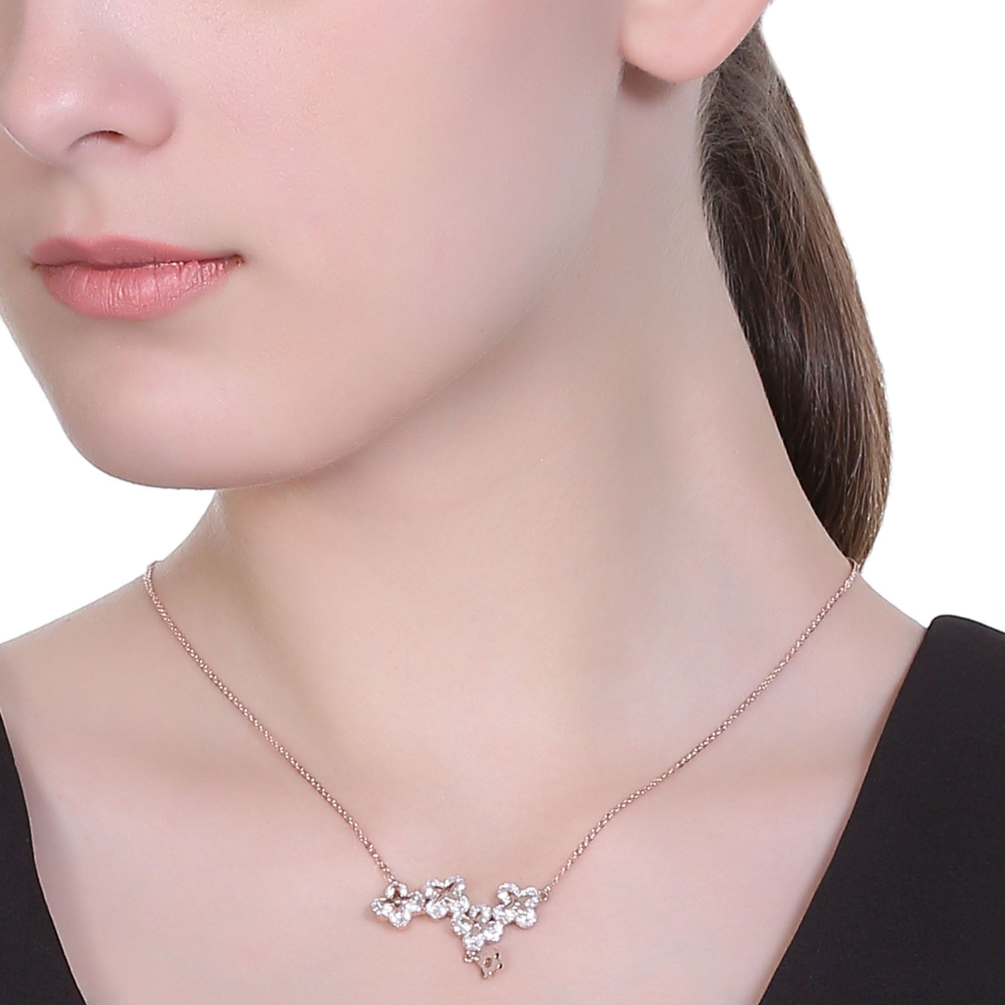 Lindo collar en baño de oro amarillo de 18 quilates, detalle de flores con incrustaciones de cristales en color blanco. Fabricado en una estructura de aleación de platino con rodio sin níquel.