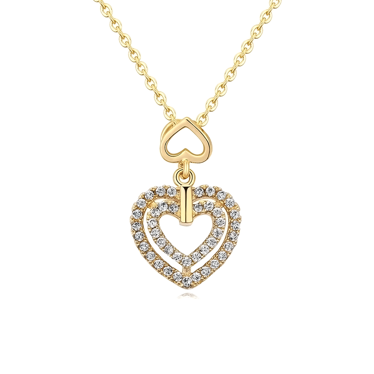 Precioso dije en baño de oro amarillo de 18 quilates, diseño de corazones con incrustaciones de cristales blancos. Fabricado en una estructura de aleación de platino con rodio sin níquel.