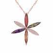Collar en baño de oro rosa de 18 quilates, diseño de flor con cristales corte marquesa de colores e incrustaciones de cristales blancos. Fabricado en una estructura de aleación de platino con rodio sin níquel.